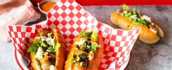 Hot Dogs with Apricot Buffalo Sauce, Blue Cheese, [...]