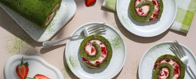 Matcha Swiss Roll with a British Strawberry & [...]