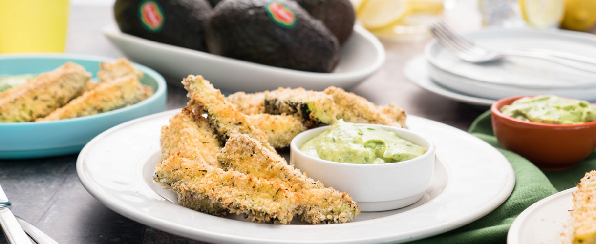 Patatine di zucchine al forno con salsa ranch all’avocado